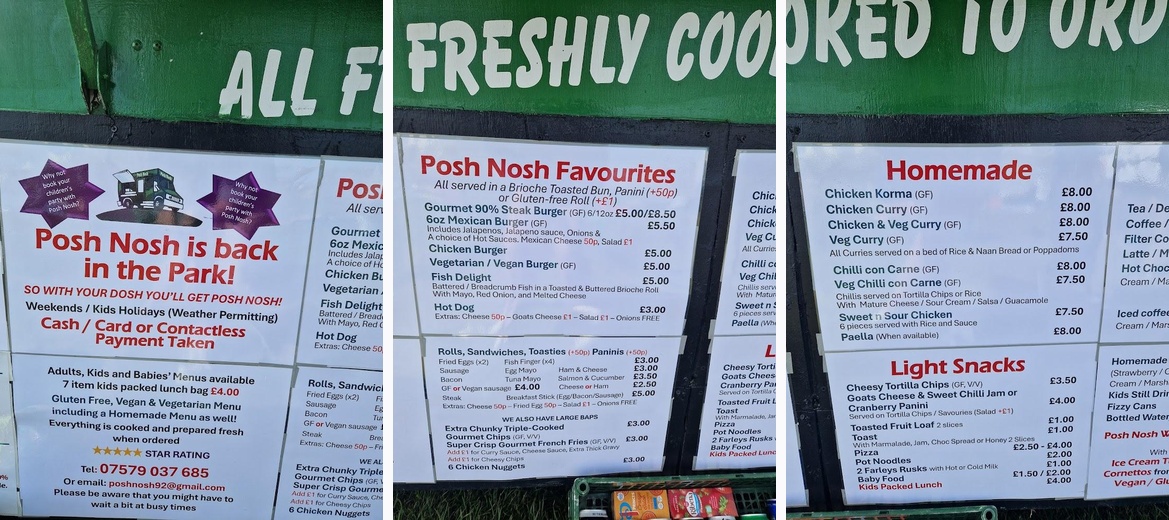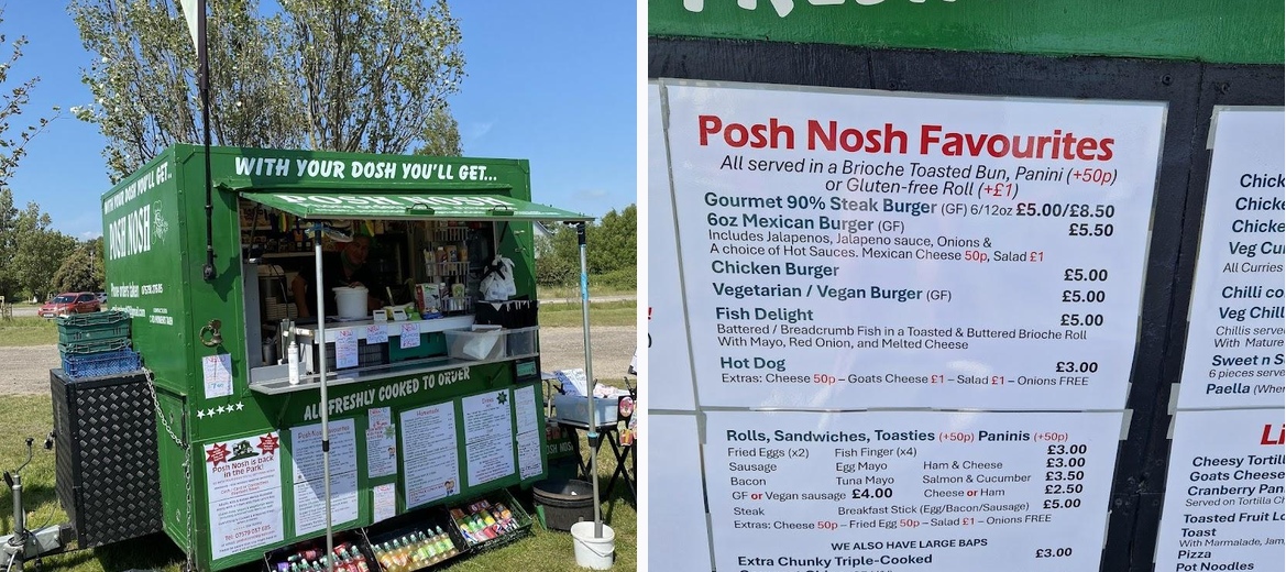 Honestly 10/10 recommend!! Not only is the food AMAZING but the customer service is even better!!! The choice of food is wide from the typical burgers to breakfast to homemade chilli and kormas!! We tried a variety of things and each item was incredible and worth so much more than what you’re charged!! Even more so, Gary’s touch of offering baby food and rusks with milk is so thoughtful to us mums who may have been caught leaving the house unprepared is so thoughtful and not something you see often. Gary was so lovely to our daughter, she now walks around pretending she works for Posh Nosh too!! We can’t wait to visit again next year… Thank you Gary!!